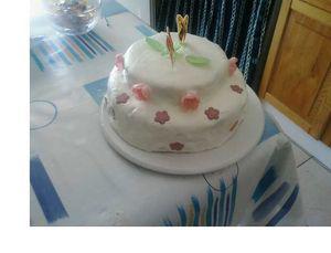 bonjour aujourd'hui je vous propose le gâteau d'anniversaire de ma seconde fille justine c'est le gâteau réalisé pour l'école