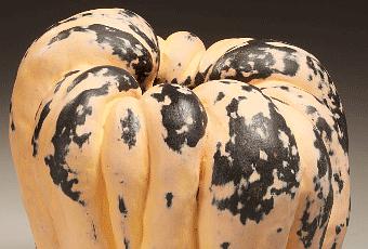 Biomorphic sculpture in the form of a pumpkin with matte glazes in pink, green glazes, 2010