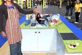 La firme suédoise a investi la rue longeant le "Harbour Bridge" en dessinant une cuisine "made in IKEA" en Pavement Art 3D. Cette technique permet de créer un décor illusionniste sur un sol intérieur ou extérieur en guise de support. Pour l'évènement, IKEA a fait appel à deux artistes reconnus dans cette discipline : Jenny McCracken et Anton Pulvirenti.