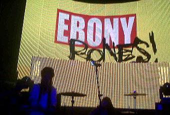 La soirée à ne pas louper la nuit dernière, le concert d'EBONY BONES au VIP Room-Le club était blindé, les groupies hystériques, alcolisées, mais Ebony Bones tellement BONNE! Malgré 30 minutes de retard, nous étions juste Hystéro dés l'arrivée du groupe le plus déjanté du moment- Regardez les quelques photos que j'ai prises entre deux fashionistas hurlant "Don't fart with my earth" (titre de l'une de ses chansons)..et la petite vidéo en bonus... Bisous, bisous.. -VIDEO- Pour le fun!