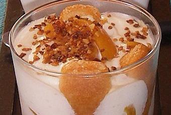 parsemer de pralin d'amandes et quelques lamelles d'abricots , mettre au frais 2h ou bien plus