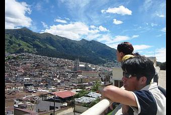 Photo: Leandro, en compagnie de notre ami Evelyn, admirant le centre-ville de Quito en juin 2007.
