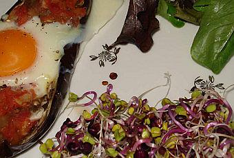 10 minutes avant de servir, casser un oeuf entier dans chaque aubergines et enfourner jusqu'à cuisson du blanc.