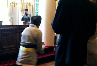 Je ne savais pas que les elfes du Père Noël mariaient aussi les gens. Paraît que c’est la soeur de Gimli. Non en fait c’est Gimli lui-même, ET MA HACHE.