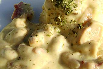 de jambon, ainsi que les champignons, et laisser cuire à feu très doux pendant une quinzaine de minutes en remuant de temps en temps. Eteindre le feu et Réserver.