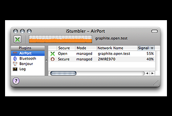 iStumbler est un utilitaire de recherche réseau sans fil, utilisant des plug-ins pour découvrir des réseaux AirPort, Bluetooth, …, tout en indiquant leurs niveaux de sécurité (utile lorsque l’on veut trouver un réseau WiFi public ou ouvert).
