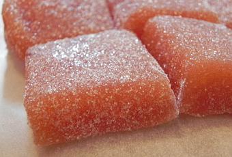 Découper en cubes, rouler dans du sucre.