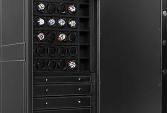 Ce coffre-fort signé Scatola Del Tempo est entièrement doublées en cuir naturel avec coutures visibles, entièrement fabriqué à la main par des experts qualifiés en cuir. A l’intérieur il dispose de 24 remontoirs à montres automatiques. Chaque groupe de rotor, composé de quatre compartiments, est indépendant par rapport aux autres. On retrouve également un vide poche et quatre tiroirs entièrement équipée pour recevoir vos montres-bracelets et vos montres de poche, ainsi que tout autres objets précieux.
