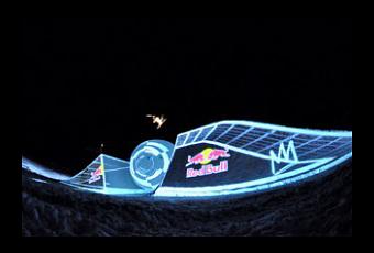 Sur celle-ci ont été projetées des images de synthèse 3D en parfaite adéquation avec les performances aériennes des sportifs.