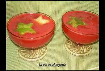 Découpez soigneusement des étoiles dans le reste de la pulpe à l'aide d'un emporte-pièce. Sortez la soupe de pastèque très fraîche et plongez-y les étoiles.