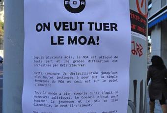 Une nouvelle campagne d’affichage sauvage à caractère politique vient de faire son apparition aujourd’hui en ville de Genève. Des mains discrètes ont placardé dans plusieurs endroits de la ville une affiche concernant le MOA. Voici le texte du message que les initiateurs veulent passer: “Depuis plusieurs mois, le MOA est attaqué de toute part et une grosse diffamation est orchestrée par Eric Stauffer.