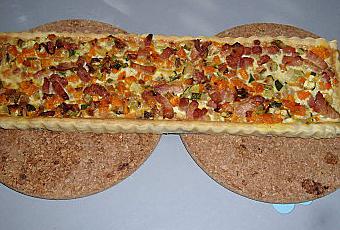 Sur la tarte mettez le mélange courgettes, lardons, carottes.
