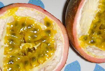 Le fruit de la passion, aussi appelé maracuja (du Brésil) ou grenadille (qui serait en fait un cousin du fruit de la passion, moins acide).