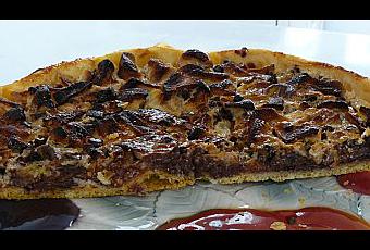 - Déroulez la pâte à tarte dans un moule à tarte, et répartissez le contenu du saladier à l’intérieur.