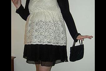 *Top à noeud en dentelles, New Look,* Bolero et Jupe volantée plumetis, H&MSac "sequiné", coup d'oeilSandales, New Look.