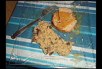 Quand le riz commence à être cuit , je rajoute mes champignons que j'ai fais revenir dans une poêle,puis je rajoute la crème fraîche , bien mélanger puis salé et poivré et servez bien chaud , je l'ai servi avec un rôti de porc piqué avec de l'ail .