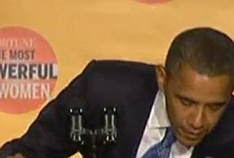 Barack Obama, le président le plus populaire de la planète vient de subir une petite mésaventure lors d'un discours au sommet des femmes les plus puissantes du monde. Petite scène cocasse à voir en vidéo sur Purefans News by Adobuzz.