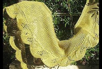 Un second Cedar leaf shawlette complètement différent avec ce fil de soie Kanpur Anny Blatt , coloris Absinthe ( 2 pelotes de 50 g )la bordure est mise en valeur avec cette matière .J'ai pris un réel plaisir à le réaliser , ce modèle est parfait pour la demie saison .