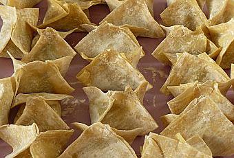 7. Confectionnez les raviolis et faites les cuire dans une friteuse.