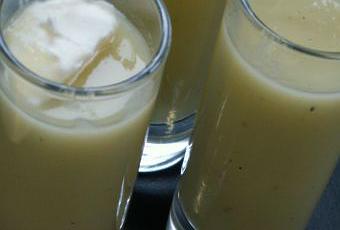 7- Mélanger ensemble 1/3 de soupe aux poireaux, 1/3 de bouillon de volaille, 1/3 de crème fraîche.