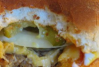 - Faire réchauffer les burgers dans une poêle pendant 5 minutes, sans huile (ils sont bien assez gras comme ça!)
