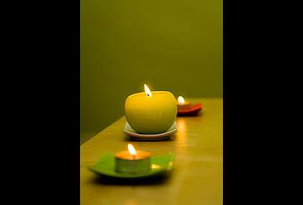 A la soirée d'anniversaire de Coco, elle qui a très bien décoré son appartement à la "D&Co", j'ai pu jeter mon regarde sur ces bougies posées sur une table basse. Une farandole multicolore dans le vert/jaune avec la touche de rouge pour les tons chauds.