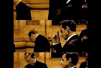 Si Sarkozy fut avare de discours, tout préoccupé qu'il était de s'afficher modeste et spirituel, on n'a cependant pas manqué d'images. Sarkozy, de quelques centimètres plus grand que son hôte papal, était souriant, la démarche toujours saccadée comme un cow-boy à peine descendu de sa monture, sourire radieux, gestes ostensibles. Le portable était rangé.
