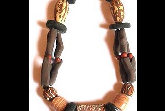Pour ce collier ethnique, perles en pâte Fimo et perles africaines en graines de raphia du Mali (ce sont les deux perles oblongues en haut). Le pendentif est aussi en polymère. Finalement ce collier n'est pas aussi lourd qu'il en a l'air. C'est un collier d'Afrique du Nord dans mon nouveau livre préféré qui m'a donné l'idée de faire ce montage.