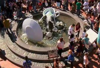 A San Francisco, la marque de produits d'entretien Mrs Meyer's Clean Day a investi une fontaine de la ville pour informer les gens du caractère écologique de leurs produits. En tant cas, on peut dire qu'ils ont vu les choses en grand : tasses, assiettes, couverts et bulles de savon à taille humaine !