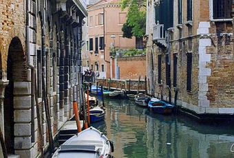 ©archives VenetiaMicio ...Sous ce ciel d'octobre tout bleu et or, poli par un petit vent plus que frais, Venise me semble plus étincelante que jamais aucune ville. Je ne sais à quoi cela tient : la grande partie, bien sûr, au miroitement que seule peut avoir une eau calme dont la surface se brise et se crispe en innombrables facettes, et dont le jeu se prolonge sur les murs en petites vagues d'ombre et lumière ; un papier jeté : les voilà qui tressaillent, bondissent. Mais ce sont les écaillures de la vieille brique qui rendent si vibrant ce ruissellement lumineux : paillettes de grès, lueurs vertes de mousse, creux blanc de sel ou jaune de soufre ou rose, par mille brisures la lumière se joue et se réfracte et s'estompe et s'exalte. C'est une fête de la Venise d'automne et d'hiver, d'un éclat dont seule une brise venue du large sait parfois parer le Bacino, sous le ciel stagnant du sirocco estival.[Liliana Magrini, Carnet Vénitien]
