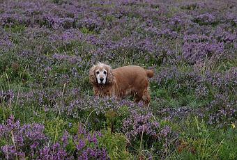 Des bruyères en fleurs à perte de vue sur les hauteurs de Hautacam. Hautacam est une station de sports d'hiver des Pyrénées françaises située dans le département des Hautes-Pyrénées en région Midi-Pyrénées à proximité d'Argelès-Gazost et de Lourdes.