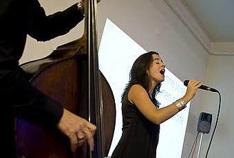 Et heureux aussi, il ne faut pas l'oublier, pour avoir assisté avec ravissement à un mini-concert du duo formé par la chanteuse Sofia Ribeiro et le contrebassiste Marc Demuth. Qu'elle chante prodigieusement bien, et qu'il l'accompagne avec maestria aussi bien sur des airs de jazz, de bossa nova ou d'une reprise enflammée d'une chanson de Madredeus.