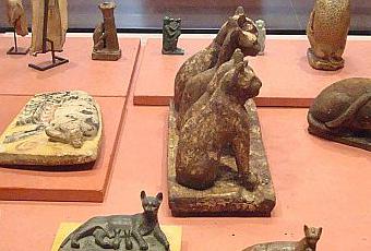 Il me semble l'heure venue à présent, après vous avoir proposé, le 21 septembre, une première introduction sur le sujet en retraçant les origines possibles de ces petits félins, puis, le mardi suivant, vous avoir donné à lire des textes d'auteurs anciens à propos de l'amour que leur vouaient les Egyptiens, et enfin, la semaine dernière, vous avoir entraînés dans quelques arcanes patronymiques, d'entamer véritablement l'évocation des figurines de chat que nous présente la vitrine 3 de la salle 5 du Département des Antiquités égyptiennes du Musée du Louvre.
