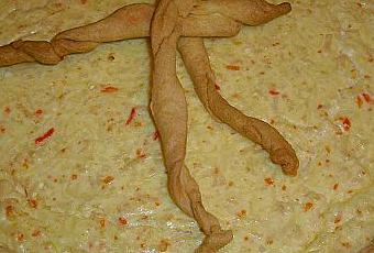 Préparer votre garniture : écraser la brousse à la fourchette, ajouter les miettes de surimi, les oeufs 1 à 1 en mélangeant à chaque fois, le gruyère râpé puis le sel et le poivre.
