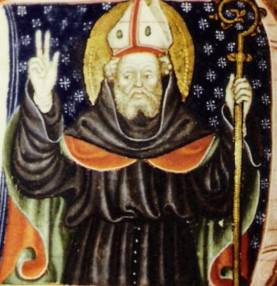 Outre le style vigoureux et linéaire du maître, la comparaison de ces deux initiales historiées permet de la même façon de mettre en évidence une grande similarité des types physionomiques entre l’empereur Claude du ms. Italien 131 et saint Ambroise.Cette proximité des figures apparaît encore plus flagrante lorsque que l’on compare la figure de saint Ambroise avec celle d’un saint évêque inscrit dans une initiale de l’antiphonaire de Voghera (Codici nn. 1-2).