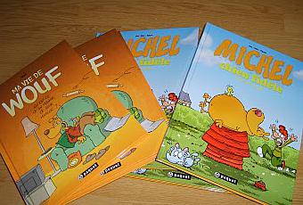 Comment ça ce n'est pas vrai - taratata - bon bref, ça n'empêche pas de penser dès à présent aux cadeaux que l'on mettra sous le sapin (et en plus ce qui est fait n'est plus à faire) - bref tout ça pour dire qu'avec le peu de monde présent à Leucate il me reste sur les bras pas mal d'albums à écouler avant la prochaine signature sans libraire. Je vous propose donc des "Michel chien fidèle" et des "Ma vie de wouf" en veux-tu en voilà. En plus je vous fais un prix (disons 11 €, frais de port et dédicace compris) - moi je dis que ce serait fort bête de ne pas se débarrasser dès à présent d'une corvée qui vous empoisonnera une bonne partie du mois de décembre. Si vous êtes intéressés vous me contactez là ([email protected]) et on s'arrange !