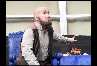 Le conteur arrive, chauve, barbu, désagréable, houspillant ceux qui entrent encore, les enfants du premier rang. Il nous promet les contes de Perrault, version classique, pas comme ces conteurs d’aujourd’hui qui… Et peu à peu, le conte de Barbe bleue, qu’il dira jusqu’au bout, forçant sa voix, contrefaisant le méchant, la jeune femme, sera envahi par les désagréments de la vie : le musicien qui n’est plus là, la femme avec qui ça ne va pas fort, le ballon qui éclate, le fauteuil dans lequel il se cogne, et même, ce jour-là, la télévision qui ne filme pas sous le bon angle ! Tous ces désagréments me font rire, tellement il est vrai qu’on rit du malheur des autres, parce que ça pourrait être mon malheur mais que, dans ce moment-là, c’est lui qui le porte, et m’en soulage.