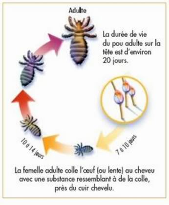 Préparer dans une bouteille spray, un mélange d'eau pure et d'he de lavande et menthe. Pulveriser la tête avant d'aller à l'école, surtout derrière les oreilles, la nuque et au niveau de l'emplacement de l'ex-fontanelle et ce durant une semaine.