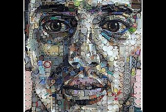 détritus qu'il trouve dans les poubelles. Les éléments ainsi collés sur
