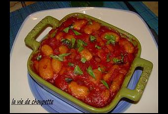 Le jour même, jetez l'eau de trempage et cuisez les haricots à l'eau frémissante, environ 1h30, avec 1 oignon piqué d'un clou de girofle et 1 bouquet garni, jusqu'à ce qu'ils soient tendres. Pelez et émincez 1/2 oignon. Hachez 1 gousse d'ail. Faites-les revenir dans une cocotte avec 50g de lardons fumés, 1 c à s d'huile d'olive et le contenu d'une petite boite de tomates entières pelées.
