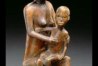 Pour commencer et faire suite à l'étude des arts Tshokwe ; le centre et le sud de l'Angola nous réservent la découverte d'intéressants objets chez les Ovimbundu et Ngangela, telle cette très fine statuette de maternité rapportée par Robert Verly.