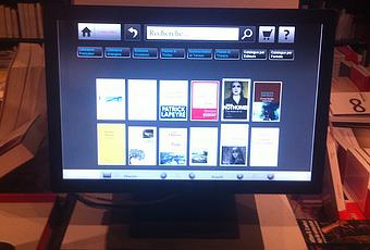 Comme vous pouvez le voir sur l’image, la borne se compose d’un poste équipé d’un écran tactile. Sur le choix du hardware, je dois émettre quelques réserves. Si l’on perçoit que le choix de l’écran a été fait pour sa solidité, la réactivité de l’écran tactile résistif n’est vraiment pas au rendez-vous. Si vous avez un iPhone ou un iPad, vous serez très déçu par l’interface tactile de la borne. Cependant, l’interface plutôt bien dessinée relève le niveau. Maintenant, il s’agit de trouver un bouquin à acheter.