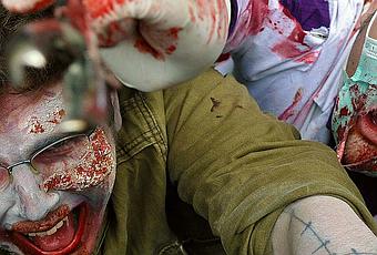 C'est à pas lent de mort-vivant que ce samedi la "Zombie Walk 2010" a sillonné quelques rues du centre de Paris entre la rue St Martin et la Place des Vosges devant une foule de badauds ahuris par tant d'hémoglobine.