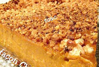 On dira à mi-chemin entre cheesecake et tarte au potimarron au sirop d'érable, aux noix et quelques épices.