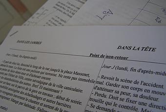 Je l'avais deviné dès les premiers jours de la troisième réécriture (troisième jet) : mon plan devait être clair, concis, structuré, directif. Et bicéphale. C'était important. Parce ce que l'une des difficultés rencontrées provenait justement du fait que je n'arrivais pas toujours à coloniser les pensées de mon narrateur. Et sans savoir comment il pense comment savoir comment il dit ? J'ai donc construit un plan en deux colonnes. Dans l'une, rien que les faits, bruts et schématiques. Dans l'autre : le ressenti intérieur, les évolutions mentales de CD. Dans les jambes et dans la tête. Les deux colonnes se complètent. Au bout, je l'espère, se trouve le texte. Dans sa version la plus aboutie, la plus à même de correspondre au projet qui m'occupe depuis deux ans à présent.