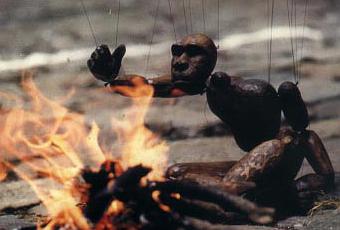 Comme le spectacle est mauvais, je me retrouve un peu déconcerté. Je me rabats sur ces choses simples qui d'ordinaire satisfont ma curiosité sur le moment : le mouvement des marionnettes, fluides, saccadées, humaines, bestiales, la coordination des mouvements du marionnettiste avec ses créatures, l'alternance des figures et des types de personnage. Le spectacle qui m'intéresse le plus à moi, ce sont les mimiques du marionnettiste, mimant toujours la démarche et l'allure de ses compagnons sculptés par ses propres soins. L'image en elle-même est intéressante, saisissante, indépendamment du fait que ce « spectacle vieux de dix ans » semble avoir été improvisé dix minutes plus tôt.