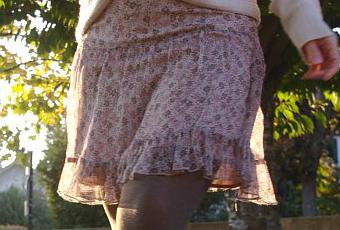 Jupe en soie et boucles d’oreilles : Camaïeu