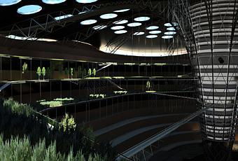 Le bâtiment sera parfaitement autonome et indépendant du monde extérieur, avec son propre climat, contrôlé par des mécanismes utilisant des cheminées solaires, ses propres sources d’énergie, un système de recyclage d’eau, ainsi qu’un système ferroviaire solaire permettant de rallier Bisbee.