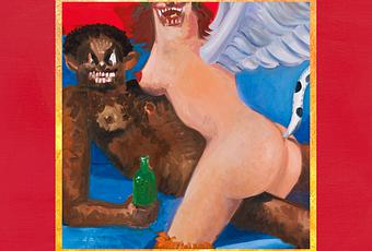 L’on savait les Américains très ‘puritains’ sur les questions touchant à la nudité, mais tout de même. N’a-t-on jamais vu deux corps s”entrelasser à la télévision ? A moins que l’embarras des autorités ne trouve son origine dans le fait qu’il s’agisse d’un Noir et d’une Blanche en train de faire frotti-frotta. Notre description se veut grossière, mais n’est pas loin de ce qu’a voulu exprimer cette fresque de l’artiste Américain George Condo: la mise en scène d’un singe (Kanye) et d’un phoenix (Symbole de Résurrection) se trouvant des points communs. A moins que le noeud de la discorde ne soit ce rotoplot gauche qu’on essaie de tenir éloigné des yeux indiscrets des moins de 21 ans. Rappellez-vous, Janet Jackson au SuperBowl en 2004…sauf que ici, la nudité et le réalisme artificiel constituent l’une des laies artistiques de George Condo. Sigh !