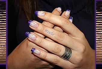 Pour la décoration, par faute de temps, j'ai tracer rapido deux spirales par ongles, une "grille" et quelques petits points !